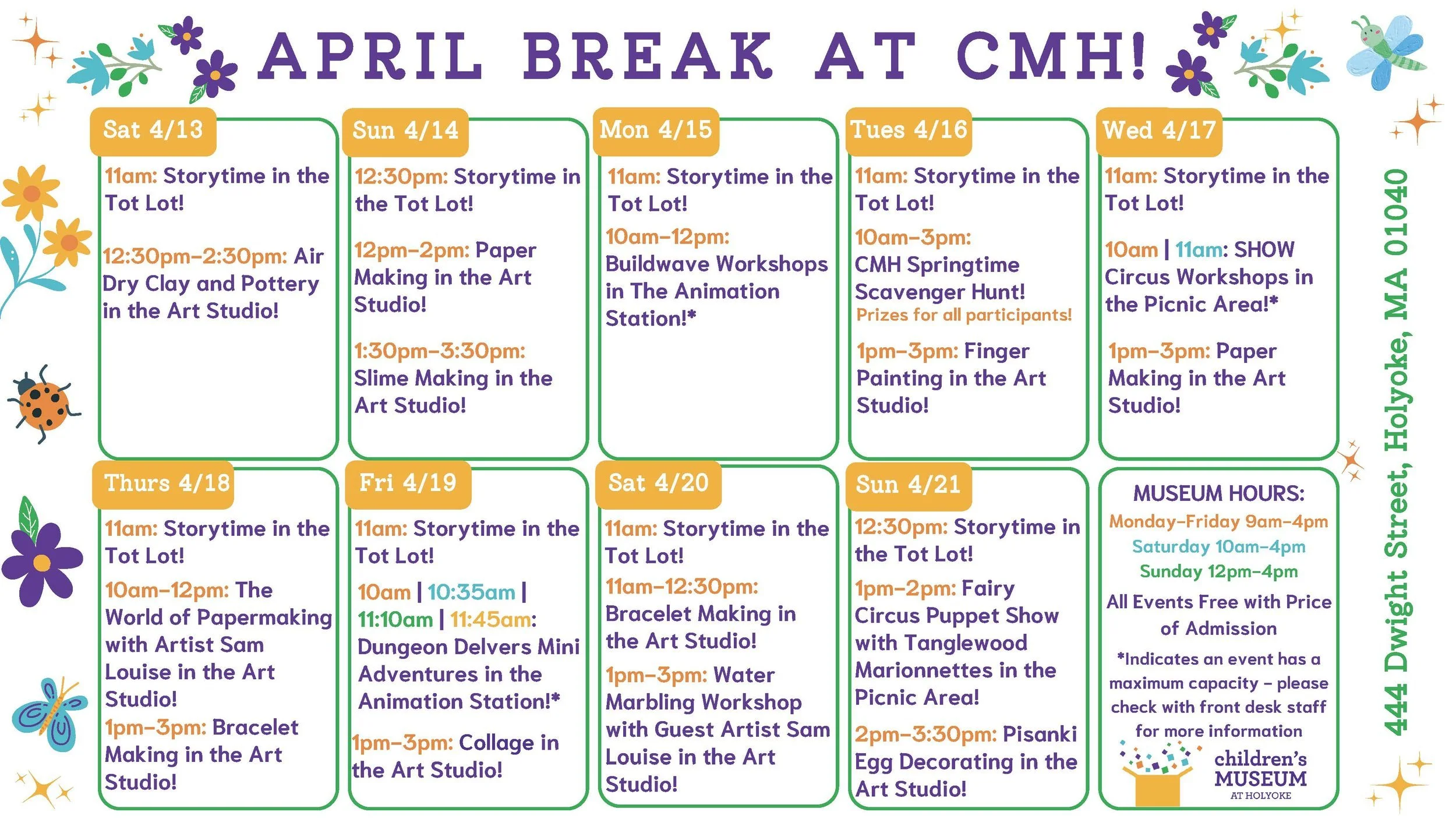 Children’s Museum at Holyoke has nine days of fun planned for April Vacation!