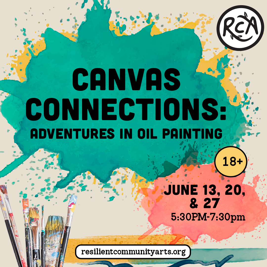Back to All Events Canvas Connections: Adventures in Oil Painting Thursday, June 27, 2024 5:30 PM 7:30 PM RCA Studio, Suite #238, Eastworks 116 Pleasant Street Easthampton, MA, 01027 United States (map) Google Calendar ICS Join RCA for three Thursdays in June to take your oil painting skills up a notch! This class is open to everyone, including beginner painters... they will meet you wherever your skill level is at!Click/tap the button below for more information. More Info