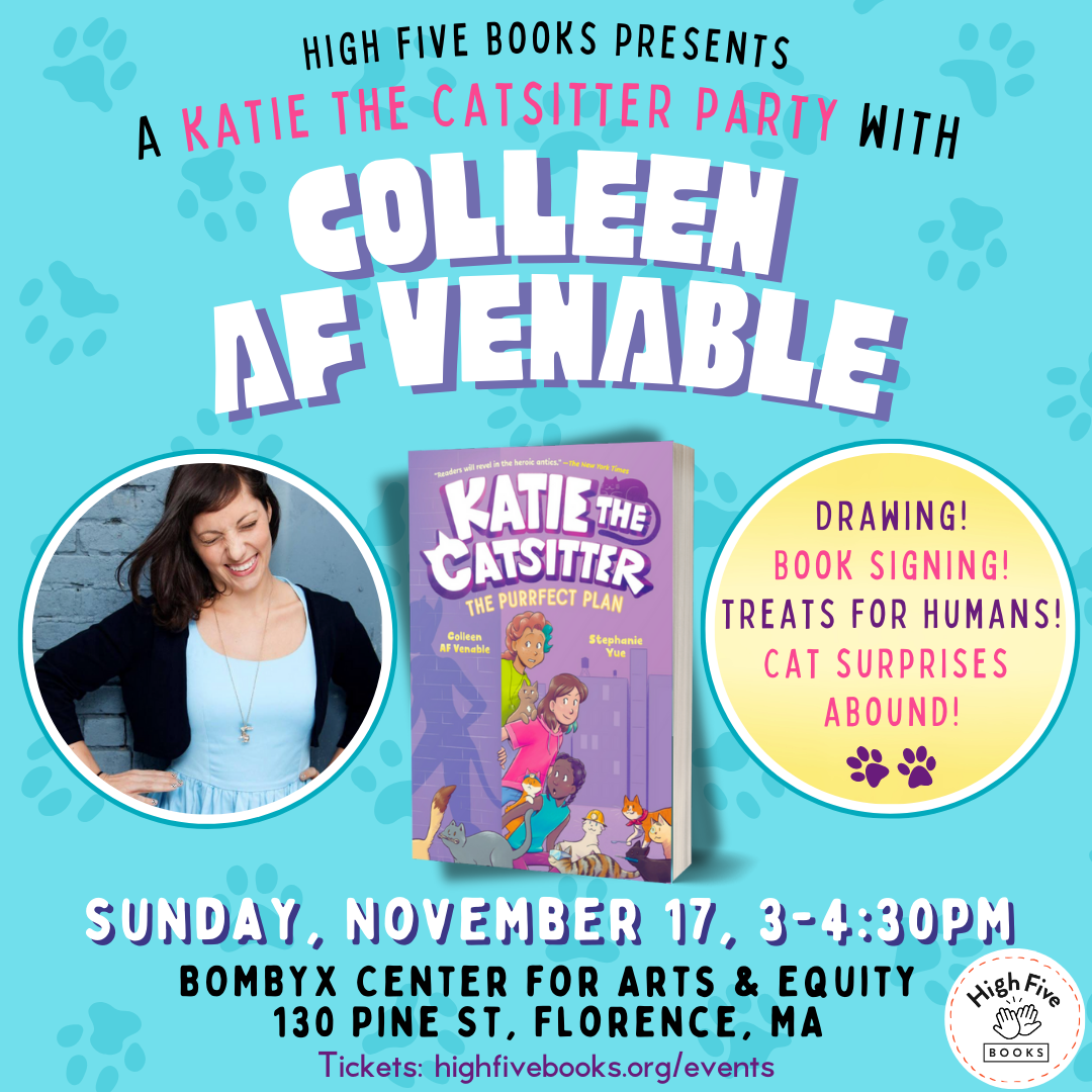 Cat’s out of the bag: This November, High Five Books is hosting graphic novelist Colleen AF Venable for a KATIE THE CATSITTER party!