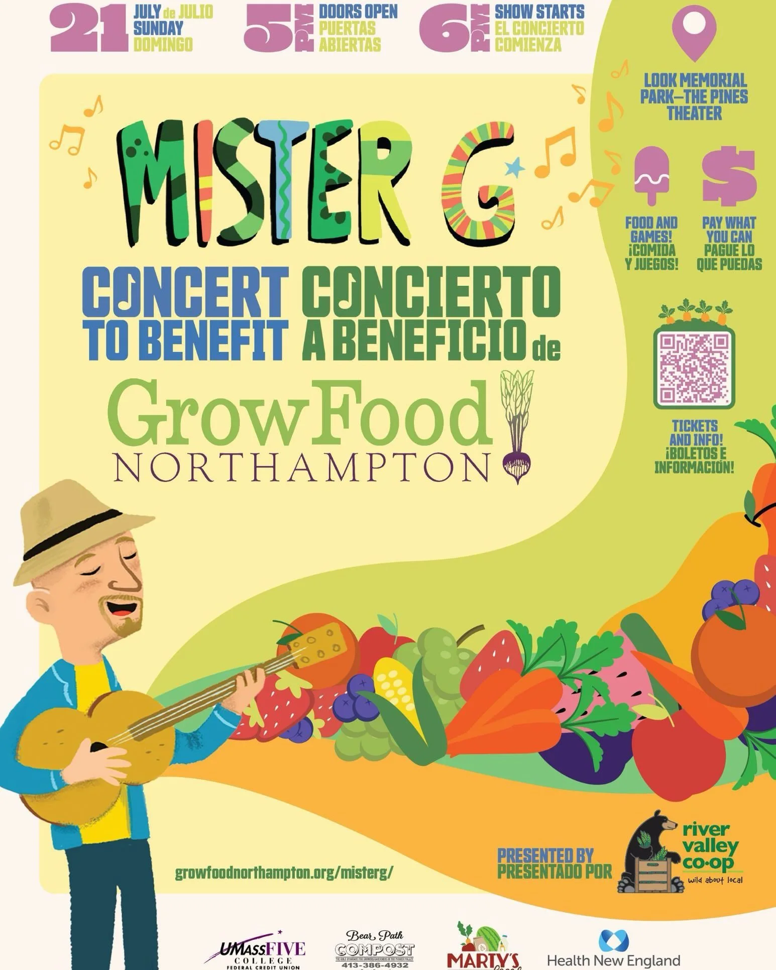 Incredible local food and farming nonprofit Grow Food Northampton AND Grammy-award winning artist MISTER G, all at the Pines Theater at Look Park!