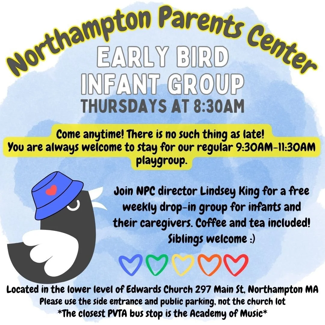 Join NPC director Lindsey King for a free weekly drop-in group for infants and their caregivers. Coffee and tea included and siblings welcome.