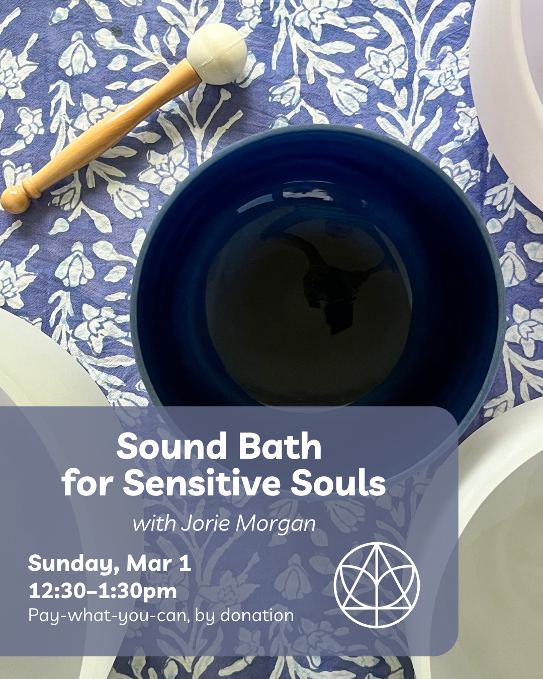 In these monthly gatherings, Jorie will work with a combination of crystal bowls, temple bells, and chimes. These instruments work with the principles of resonance, entrainment, and cellular healing in promoting general relaxation, resetting the nervous system, restoring mental clarity, and aiding in cellular restoration. All sessions will be touch-free and mindful of potential reactivity to dissonance, binaurals, and overplaying.