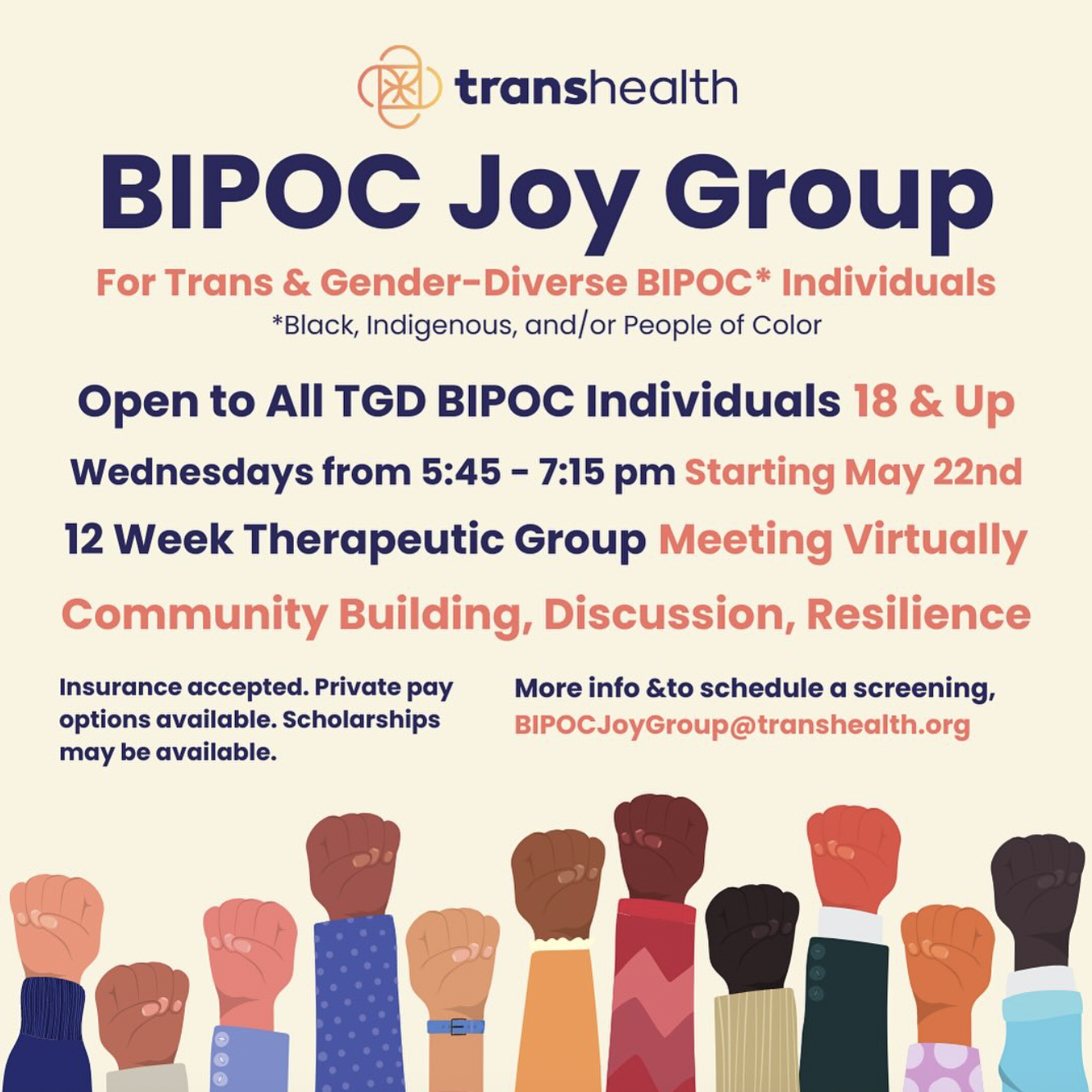 For more information or to schedule a group screening please email: BIPOCJoyGroup@transhealth.org