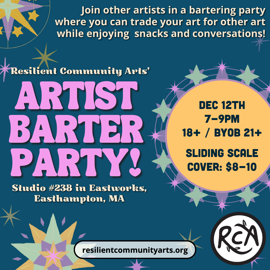Join artists of all backgrounds, styles, and mediums on December 12th for an evening of sharing and swapping art!