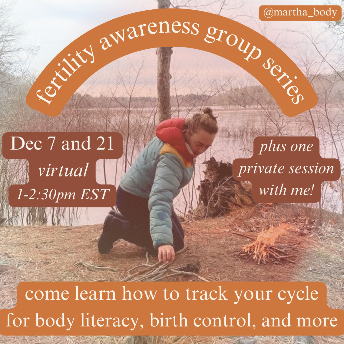 Dec 21 Wellbeing, Fertility, Martha Hoffman Services Fertility Awareness Group Series: Part 2 Saturday, December 21, 2024 1:00 PM 2:30 PM Virtual (map) Google Calendar ICS View Event →